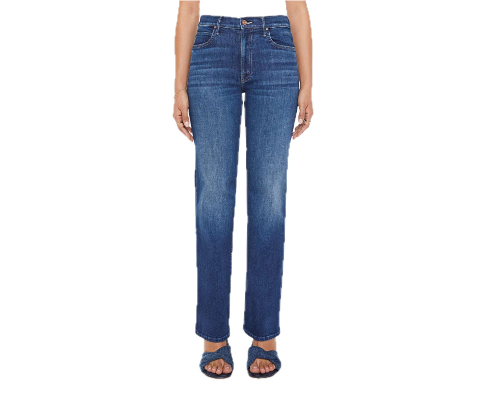Good things come in small packages. A high-rise straight leg jean with a zip fly, 31.25-inch inseam and a clean hem. Made from a blend of recycled stretch denim, Troublemaker is a mid-blue with whiskering and fading at the knees.