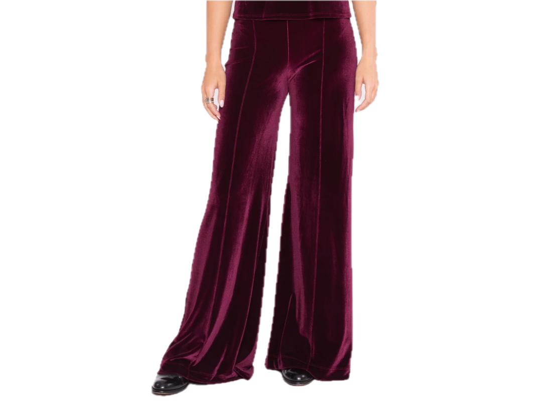 The iconic Ripley Rader Perfect Pant, now in luxurious stretch velvet knit. This high-waist, wide-leg silhouette delivers the appearance of a structured, tailored look with the comfort of a soft knit. The exaggerated wide leg and elongated rise flatter every shape, creating a look that’s both sophisticated and effortlessly comfortable.