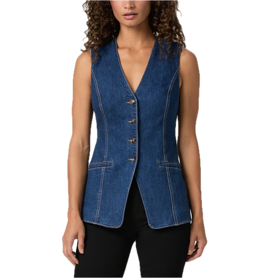 Made from ultra-soft denim in a vintage-inspired dark blue wash, this sleeveless longline vest top is designed with a flattering v-neckline and welt pockets. Pair the Campanelli Vest with the matching Stevie jeans for an effortlessly cool double denim look.